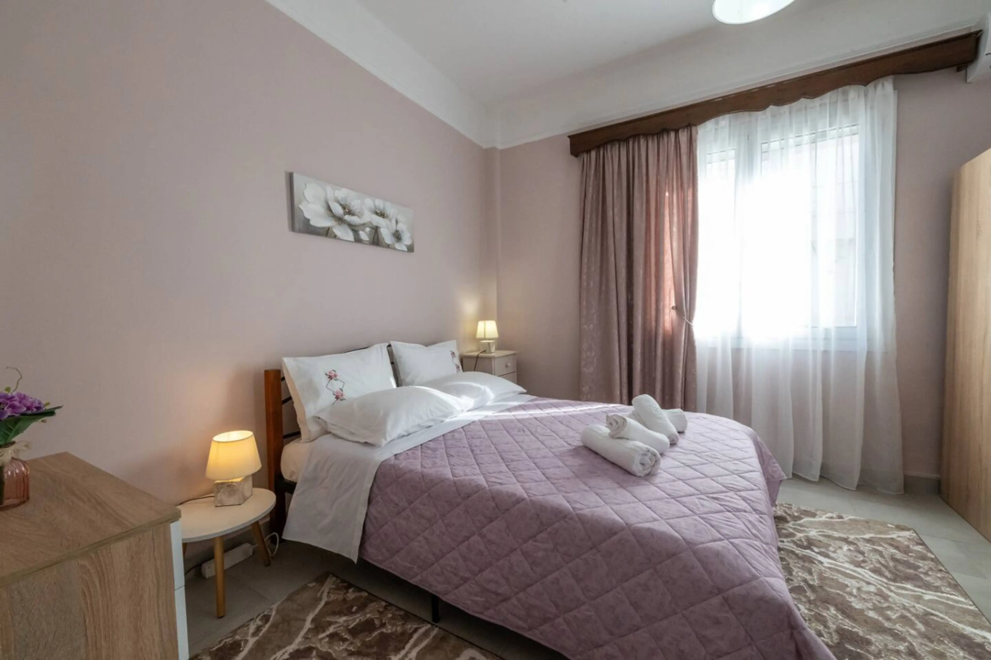 Warm and comfortable ground floor one bedroom apartment in Kalamata, ideal for families. It features one bedroom with a double bed and near the living room a single bed and a sofa bed. The apartment offers a cozy living room, a fully equipped kitchen, and a small private yard for relaxing moments. L...